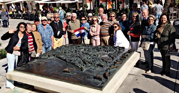 Día 05/10 Visita de Split Nos recibió nuestra Guía Alejandra Lerotich que nos dio un recorrido por la ciudad Antigua y la Medieval de Split, recorriendo sus iglesias, parques, plazas. contando sus costumbres e historia. Tengo que decir que ella había nacido en Argentina, de padres croatas, y había vuelto a su país hace diez años, hablaba perfectamente el castellano, además era guapísima y soltera, decía ella que los croatas era sosos J. Visitamos el Palacio del Emperador Romano Dioclesiano levantado en la zona antigua de la ciudad en el siglo IV D.C. y Catedral de San Doimo , patrón de la ciudad, construida sobre las ruinas de uno de los santuarios más antiguos del mundo, el mausoleo de Diocleciano. Nunca había estado en Split, y realmente me ha impresionado muchísimo la ciudad, es muy interesante e impresiona ver cómo han convertido el enorme palacio de Dioclesiano en un centro urbano medieval y asombra ver que actualmente se conserva buena parte de la estructura y sótanos de aquel monumental palacio. Terminamos el recorrido por la parte histórica de Split fuera del palacio, y como siempre hago, un tiempecito libre para hacer compras o tomar una copita antes del volver al crucero Día 06/10 Excursión por Corfú