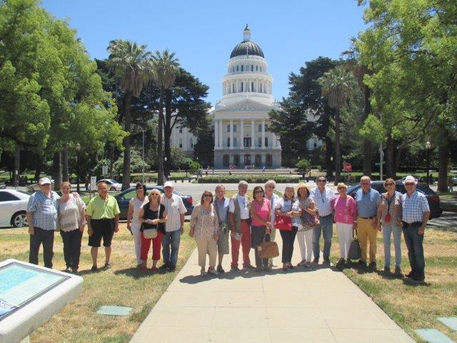 Por la tarde nos desplazamos a San Francisco cenando en un restaurante típico americano un “Steak House”. La sorpresa fue grande, cuando descubrimos que era una noche muy especial, con un grupo de chicas más bien maduritas que estaban celebrando un cumpleaños, y habían contratado un conjunto musical fabuloso, formado por tres cantantes de color y 4 músicos. Increíble la fiesta que montaron, total nos unimos a la juerga y algunos de nosotros se hincharon de bailar al son del Blues. La mañana siguiente, primero nos desplazamos al puerto, donde hay un mercado de productos de alimentación realmente merecedor de verse, para seguidamente dar una vuelta con el autobús hasta el afamado puente “Golden Bridge” donde nos paramos hacer algunas fotos y seguidamente nos desplazamos al famoso pueblecito de pescadores llamada Suasalito, allí almorzamos en un restaurante típico de pescado. Tuvimos un tiempo libre después de comer para visitar las innumerables tiendas de regalos y luego seguimos con la vuelta turístico por San Francisco visitando los lugares más destacados, y finalmente para terminar la tarde, nos subimos a uno de los célebres tranvías de la ciudad para hacer un recorrido, bajando por las peculiares cuestas empinadas, que salen en cualquier película que se precia de San Francisco.