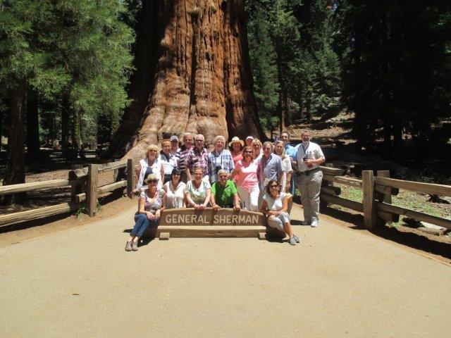A la mañana siguiente salimos hacia el parque Nacional de Sequoia, donde están los arboles más grandes del mundo y con una antigüedad que superan los 3.000 años. No hay palabras para expresar la magnificencia de estos fastuosos ejemplares de la naturaleza. Siempre he visto fotos de estos árboles, pero estar al lado de ellos, te empequeñece, te sientes como un minúsculo topo. Realmente son impresionantes, no se ve el final del árbol, son majestuosos, además de preciosos. Ver un bosque lleno de gigantes, no tiene palabras, los dos más grandes tienen nombres de famosos generales americanos, General Grant y el General Sherman. Organicé el almuerzo en un restaurante rodeado de estos árboles, una cabaña sublevada a cierta altura que daba una vista esplendida sobre estos ejemplares. Volvimos a Fresno para dormir y al día siguiente salimos hacia el Parque Nacional de Yosemite. Si el parque anterior nos dejó “pasmados”, este tiene unos dimensiones no vistas en Europa, la fastuosidad y extensiones de los valles y las cascadas no tiene nombre, las montañas son unas moles de rocas impresionantes, nos acercamos a varias cascadas, puntos de vistas panorámicas y tuvimos hasta la suerte de ver un osa con su cría. Almorzamos en un precioso hotel y por la tarde nos desplazamos a Stockton para pernoctar.