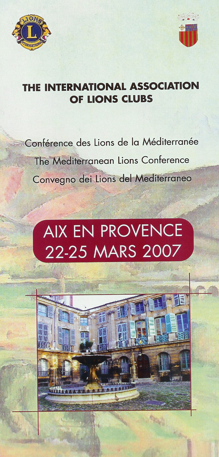 El costo de la inscripción es de 200 Euros y el acompañante 150 Euros, como pueden ver un precio muy razonable, el precio incluye todas las Cenas, almuerzos y el concierto. El precio de los Hoteles son los siguientes: Hotel sede Grand Hotel Roy René**** 135/ 150 (Doble) por noche y Novotel Beaumanoir*** o el Hotel Pont de l'Arc*** 90/100 (Doble) por noche. Los precios incluyen desayuno. Además hay programadas excursiones para los acompañantes. El aeropuerto más cercano es el de Marsella, que está a unos 30 kilómetros, por lo tanto desde España es fácil llegar, ya que hay vuelos directos desde Madrid y Barcelona DESARROLLO DE LOS TEMAS DE CADA SESIÓN DE TRABAJO Relaciones humanas, sociales culturales: Jóvenes universitarios del mediterráneo. ¿Cómo acoger a los Jóvenes extranjeros en nuestras ciudades? ¿Cómo mantener relaciones con las familias y amigos? ¿Cómo incentivar su interés por los problemas culturales, económicos y del medio ambiente del mediterráneo? Segunda SightFirst en los países del Mediterráneo: ¿Cómo el programa ha permitido desarrollar proyectos que han protegido o devuelto la vista a personas en la zona del mediterráneo? Testimonios de los Distritos y Clubes. ¿Cómo se está desarrollando la Campaña en la región? Intercambio de experiencia en los diferentes países. Medio ambiente: La gestión del agua potable en los países del mediterráneo. El agua potable cambia vocaciones; las necesidades de la agricultura están en conflicto con las urbanizaciones. La evolución de la calidad y cantidad de agua. Gestión de las cuotas administrativas y la regulación de la propiedad, derechos de uso y polución, la producción y distribución del agua industrial. ¿Qué iniciativas pueden los Leones tomar en este sentido, para luchar contra la pobreza y proteger el medio ambiente? He recibido un artículo del Pasado Director Internacional Jacques Garello, que he querido traducir para vosotros. EL MEDITERRÁNEO NO SEPARA, NOS UNE Se dice que la civilización ha nacido en los alrededores del Mediterráneo, Atenas, Roma Jerusalén, pero también en Cartago y Córdoba. El Mediterráneo, durante siglos ha sido un espacio de intercambio de pueblos diferentes y de culturas diversas. Y aun lo es hoy en día, pero existe una línea que separa el norte rico con el sur pobre. Pero precisamente la comunicación debe necesariamente establecerse o intensificarse entre las dos riveras, si queremos reencontrar un pensamiento común. El Leonismo está empeñado en el mundo entero, a crear o restaurar la unión afectiva entre los pueblos asegurando la promoción de los valores universales. Él respeto a la persona, sus derechos, la comprensión mutua, la libertad y la solidaridad. El azar ha hecho que administrativamente hayan separado a los Leones de Europa, África y el cercano oriente. Pero tenemos muchas amistades y tantas cosas por hacer juntos. Por esta razón, por la inactiva de nuestros amigos Italianos, fue creado hace unos 20 años, la Conferencia de los Leones del Mediterráneo. Están organizadas cada año en un país diferente, algunos Leones seguramente tendrán el recuerdo de la conferencia en Beirut, Mersin o Dubrovnik. Por segunda vez en esta historia, desde de Perpignan, Francia tiene el gusto y la misión de acoger esta Conferencia en Aix en Provence. Este año tendrá un relieve especial, ya que será la ocasión de hacer hincapié sobre la Campaña SightFirst en los diferentes países del Mediterráneo, pero también sobre el Programa SightFirst, que ha podido desarrollar acciones humanitarias conjuntas de los clubes de Europa, África y el cercano oriente. El director Internacional de la Campaña, el Pasado Presidente Internacional Frank Moore, nos honra con su presencia en la Conferencia y tendrá un encuentro con todos los responsables de todos los países y Clubes. He tenido sumo cuidado en ofrecer unas prestaciones simples y poco costosas, pero atrayentes. La municipalidad de d'Aix en Provence y las empresas de la región han aportan un apreciable apoyo, y si hubiera un beneficio estos irían a la Campaña SightFirst II. Os animo ahora mismo, reservar estas fechas en tu agenda, prepárense a comenzar la primavera en Provence, los almendros estarán en Flor. PID Jacques Garello Director de la Conferencia EXCURSIÓN POST CONFERENCIA POSPUESTA POR POL NAVARRE Domingo 25 de marzo: Salida de Aix en Provence (sin maletas) para La Ciotat (ciudad de los hermanos Lumière, inventores del ciné), Cassis (puerto encantador de Marsella), Toulon, Cogolin (pueblo con muchos vinos rosados de Provence), Grimaud, Brignolles para regresar a Aix en Provence para recuperar las maletas y nos vamos a Avignon para descansar. Lunes 26 de marzo: visita con guía en castellano de la ciudad de Avignon (de las 10 hasta la 13.00), almuerzo en Avignon y salida para Nimes (capital de la tauromaquia francesa), con visita de la ciudad y de su plaza. Regreso a Avignon. Martes 27 de marzo: salida para Carpentras, Vaison la Romaine, Orange y regreso a Avignon. Miércoles 28 de marzo: salida con maletas para ir a Marsella via Arles, ciudad con Vestigios romanos y aeropuerto con destino a casa. Para más información llamen a Pol Navarre
