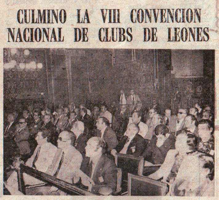 Ayer culmino la VIII Convención Nacional de Clubs de Leones que ha venido desarrollándose en nuestra ciudad. A las diez de la mañana tuvo lugar la tercera, sesión de trabajo en el salón de sesiones del Ayuntamiento de Tarragona, con el informe del gobernador del Distrito, del secretario y del tesorero. presentándose a estudio y votación el candidato a gobernador y a sede de la IX Convención. A las diez y media de. la mañana, las señoras y acompañantes visitaron la Necrópolis Paleocristiana, el Foro Romano y las playas. Por la tarde tuvo lugar un Symposium Leonístico en los salones del Hotel Imperial Tárraco, bajo el tema «Valores humanos del Leonismo español», y a continuación, un Seminario para presidentes, secretarios y tesoreros. Finalmente, a partir de las nueve de la noche, con asistencia de primeras autoridades, provinciales y locales, fue clausurada la VIII Convención de Clubs de Leones de España a lo largo de una cena-baile de gala, que estuvo llena de gran cordialidad y compañerismo. Artículo de un periódico LA PROVINCIA, Miércoles, 14 de mayo, 1975 (Lo tenía PGD Juan Andrés Melian) En