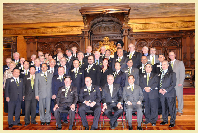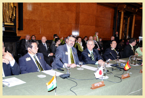 Seguidamente el Ayuntamiento nos ofreció una copa de bienvenida y luego cena la en una de las dependencias del Ayuntamiento. La cena fue amenizada, por tres ganadores del Concurso Musical de Jóvenes, que habían participado en años anteriores en los Forums Europeos. El día siguiente, por la mañana, tuvimos la reunión conjunta, de los Comités de Liderazgo, Membrecía y Servicios a Clubes y Distritos (El mío), que realmente son los tres más importantes que tiene la Asociación, ya que todo lo demás gira en su entorno. Esta reunión es muy importante, pues se discuten los futuros planes de la Asociación. Se trataron tres temas importantes, los planes de desarrollo de China y Este de Europa. La progresión de China que es realmente impresionante, ya han formado tres distritos completos y tienen tres provisionales, que progresan de forma geométrica. Han tenido un aumento neto de 4.000 socios este año, quieren llegar el año que viene a los 10.000 y al siguiente 20.000. El este de Europa va progresando más lentamente, se ha conseguido crear 40 clubes y tener más de 800 socios nuevos. Luego se ha tocado un tema muy importante, y es la creación de una área constitucional nueva, que sería África. Actualmente pertenece al área Constitucional de la India, sur este asiático y medio oriente (ISAAME). Hace tiempo que África reclama esta posición, pero no tienen los suficientes miembros, aunque estos últimos años ha tenido una progresión importante, llegando hoy en día a tener más de 21.000 socios, pero que es poco para un continente que supera los 900 millones de habitantes. Se ha acordado tratar África a nivel administrativo, como un área geográfica, o sea para subvenciones y programas. Pero la aceptación oficial como área constitucional, será aprobada en una Convención Internacional cuando lleguen a los 30.000 socios. Creo que ha sido una muy buena solución que motivará a los compañeros Africanos a crecer para llegar a esta meta que tanto desean, y que entre otras cosas les dará la posibilidad de tener un Director Internacional propio del área, como lo tiene Australia.