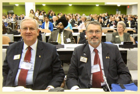 Una experiencia muy interesante y especial, atender este evento que se va celebrando cada año en Nueva York el día 18 de marzo, siendo esa la 33 vez que se hace. Tenía la curiosidad de asistir a este evento para conocerlo mejor y ver la posibilidad de organizar la participación Española en un futuro próximo. Las fechas varían de un año a otro, dependiendo de la disponibilidad de las salas en la ONU. Esto año ha sido más complicado, ya que el edificio está en reforma, y las reuniones se tienen que hacer en un edificio anexo provisional. Yo llegué el día 17 por la noche, y por la mañana fui con el vicepresidente segundo Wayne Madden y su esposa Linda, a ver uno de los grandes desfiles de Nueva York, después del 4 de Julio (día de los EE UU), el día 18 de marzo, día de San Patricio patrón de Irlanda, es una gran fiesta en Nueva York, hacen un enorme desfile por la 5ª Avenida, más o menos como el que hacemos nosotros en la convención internacional (El nuestro es más bonito y con mucho más colorido). Luego fuimos a ver la “Zona 0”, donde estaban las torres gemelos, para ver la progresión de las nuevas construcciones, ¡bastante impresionante! Por la noche hubo una cena de bienvenida para autoridades y Leones participantes del evento, en el Hotel Millennuim, que es la sede que se suele utilizar, ya que está justo al lado del edificio del ONU. La mañana siguiente, a las 10 de la mañana, empieza la jornada de trabajo. Comenzó con unas palabras de bienvenida del PIP Joseph Wroblewski, que es además nuestro representante ante la ONU. Seguidamente intervino el Stephane Oujarric, Director de la división de medios de comunicación del departamento de información pública de la ONU, en representación del Secretario General, que tuvo que irse urgentemente a Túnez y Egipto. El nos congratuló sobre la labor que realizamos para la juventud y el apoyo del proyecto de la UNICEF “School in a Box” (luego lo explico), también mencionó lo importante que era nuestro trabajo, ya que los Clubes de Leones están en contacto directo con los necesitados, hacemos “trabajo de campo”, con nuestro labor y el dinero que invertimos, hacemos un gran bien en las comunidades donde estamos implantados; además, consideró que los Clubes de Leones son portadores de la democracia en los sitios donde estamos presentes.