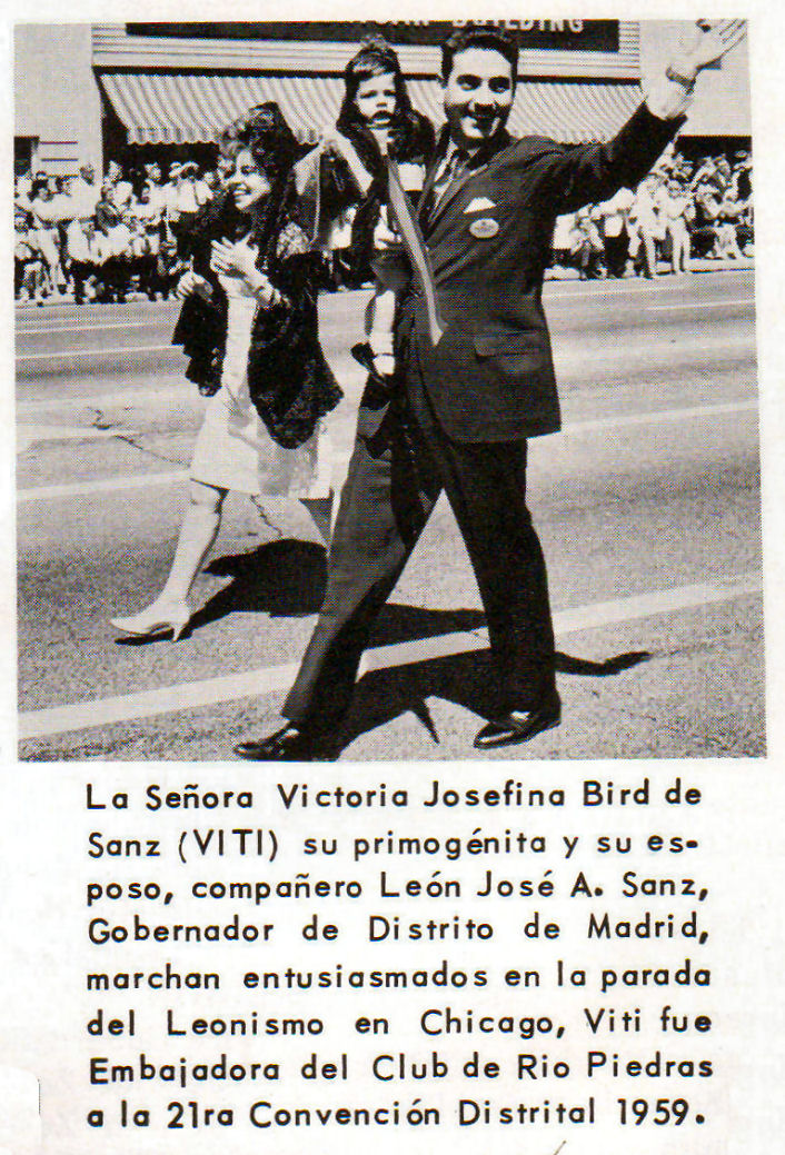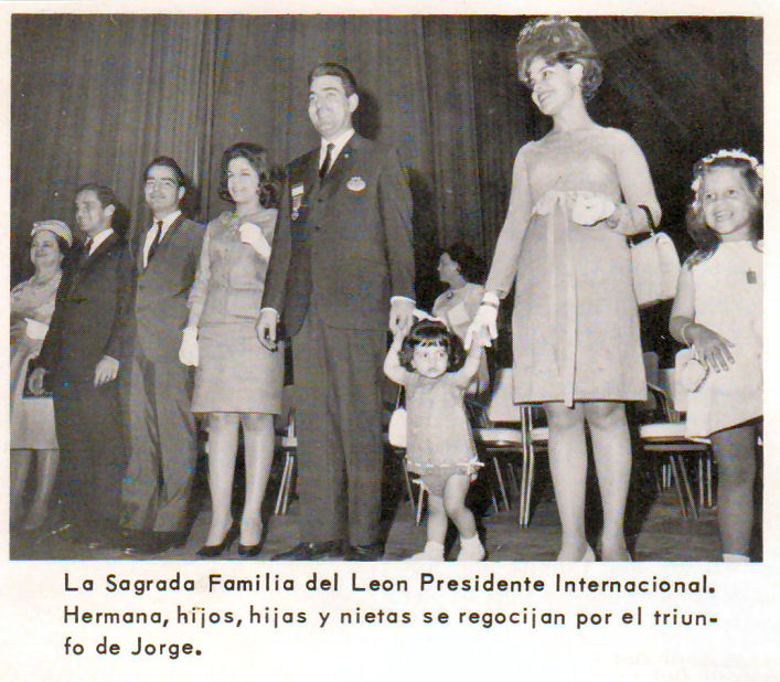 El 1º por la izquierda, es Jose Antonio Sáenz de Ormijana. A la sazón, uno de los fundadores del leonismo español y primer gobernador del Distrito 116 (1967-1969), cuando se fundó nuestro Club, ex-Director Internacional (1972-1974) y ex-Presidente del Consejo de Gobernadores del DM-116 (1986-1987). Por supuesto, aquí representaba al Club Madrid-Decano, nuestro padrino, además de estar como Gobernador. La Sra. que se encuentra a su lado, con peinado típico de la época, es su esposa Viti, e hija del que llegó a ser Presidente Internacional (mas o menos por aquella época), el portorriqueño Jorge Bird. Uno de los principales promotores del leonismo en España y que aparece, junto con su esposa, (1ª y 2º de la 2ª fila, empezando por la derecha). El que está detrás de la Sra. Bird, que solo se le ve de la nariz para arriba, creo que es el primer presidente de nuestro Club, Carlos Pradel. Del resto, hay 2 ó 3 que me suenan, pero mi memoria no llega a tanto. Pues por entonces, era un chavalete de 20 añitos (quien los pillara otra vez, eso sí, con lo que ahora sé) y los únicos leones que conocía, eran los del zoológico de Madrid (entonces en el Retiro) y los de los circos. Javier