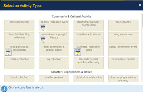 Los emblemas se basan en el número de tipos de campaña reportado (hasta 4, basados en Campañas Globales de Servicio en Acción).