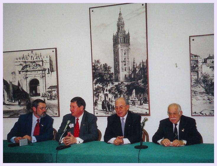 En la foto PPC Roderick Weale, Presidente Frank Moore III y Luis Domínguez Calderón (Mijas) visitando las obras de la "Casa del Estudiante". La mañana siguiente, cumplimos con las visitas obligadas y de cortesía al Presidente del la Comunidad Andaluza Manuel Chávez, un poco corta, ya que estaba en un pleno de Gobierno y después de un pequeño paseo hasta el ayuntamiento, nos recibió el Alcalde de Sevilla, que el mismo nos enseño las instalaciones de esta bella edificación de estilo plateresco. Curioso para mi, ya que viví 12 años en Sevilla, pero nunca lo había visitado, realmente muy bonita, el alcalde nos hizo entrega de una medalla de la ciudad a cada uno de nosotros.