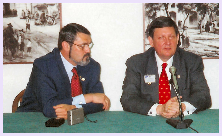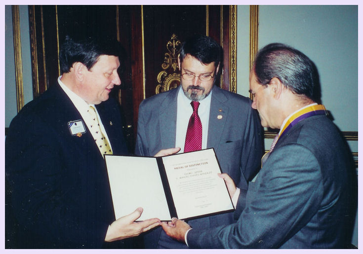 Actuando como traductor ofical del Presidente Frank Moore III, sentados están Jesús Martínez Moreno (Sevilla) y el Presidente del Consejo José Solera Barco con su esposa Carmen (Ciudad de Ceuta) Por la noche tuvo lugar una cena de convivencia entre los presentes donde el presidente entregó algunos banderines y 4 “Certificados de Apreciación de Presidente”, fueron al Presidente del Club de Sevilla Jesús Martínez Moreno, al presidente de la Fundación de la Casa del Estudiante, el pasado presidente inmediato Miguel Gallego Jurado, al Pasado Gobernador Rod Weale y a mi. También entregó la medalla del Presidente, al actual Presidente del Consejo José Solera Barco. A su vez, el presidente del Consejo, en nombre de los Leones de España, entregó al Presidente una preciosa figura de Lladró.
