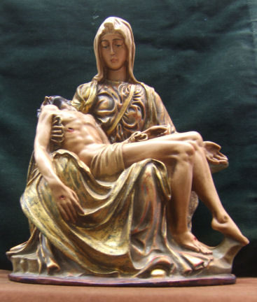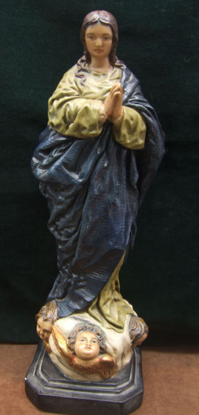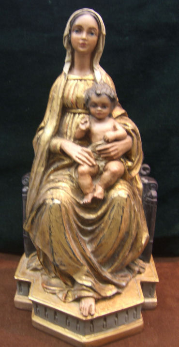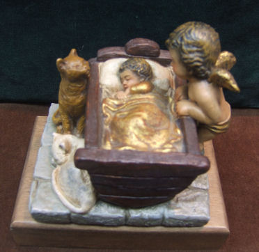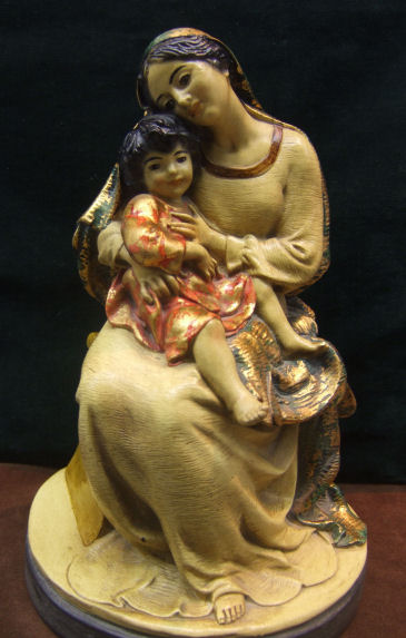 Pujol es un famoso artesano de Barcelona (España), que se ha hecho famoso por su trabajo en las figuras de estilo barroco, su familia ha hecho esta artesanía durante generaciones, y el sigue trabajando en esta maravillosa artesanía Española. Su producción es muy pequeña, ya que trabajo solo. Como pueden ver hace solamente figuras barrocas religiosas y ángeles. Están hechos en resina, que es una material muy duro, y obviamente pintados a mano y terminados con “pan de oro”. Una de sus especialidades son los nacimientos, que son realmente extraordinariamente bellos, solamente un gran especialista podría darse cuenta que son reproducciones. Pujol es un gran artesano, creador de esculturas religiosas barrocas. Su trabajo es muy elaborado y es amante de los detalles pequeños. Cada pieza es una obra de arte de gran calidad. Su familia llevan trabajando desde el año 1956, y muchas de sus piezas antiguas ya están en diferentes museos, creo que esto demuestra la calidad de su trabajo. También hacen belenes, para verlos pinchen aquí. La altura que mencionamos, es siempre la pieza más alta del Belén, vale. Por favor también entren en esta página web: www.mijasceramic.com o escríbanos a: NUESTRO E-MAIL