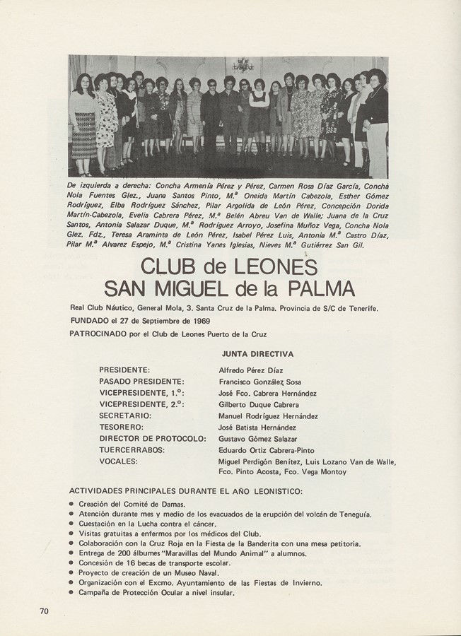 Club de Leones San Miguel de la Palma fundado el 27/09/1969