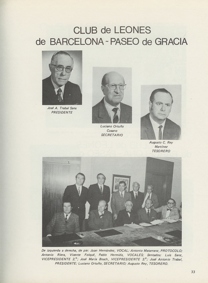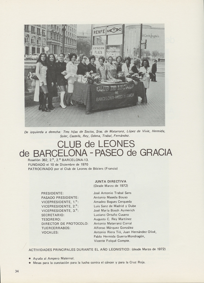 Club de Leones Barcelona Paseo de Gracia fundado el 09/12/1970
