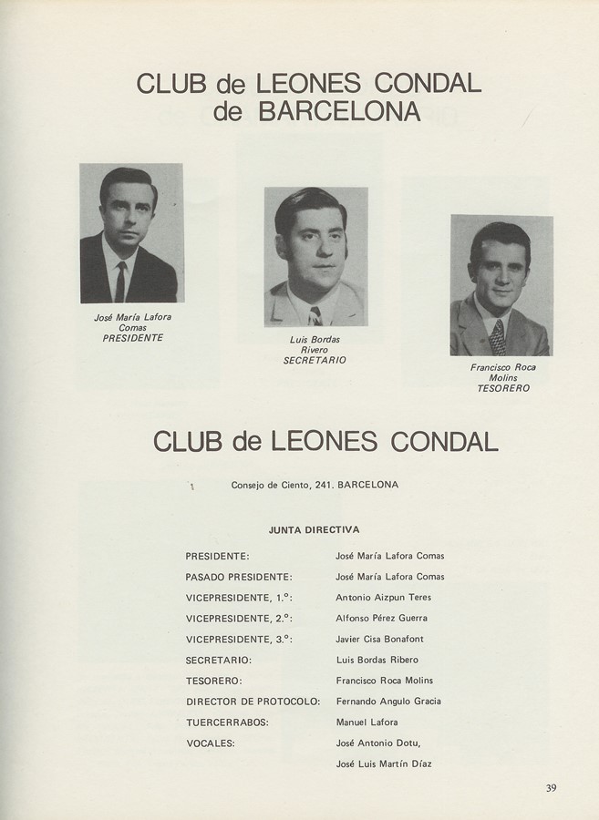 Club de Leones Barcelona Condal fundado el 03/12/1972