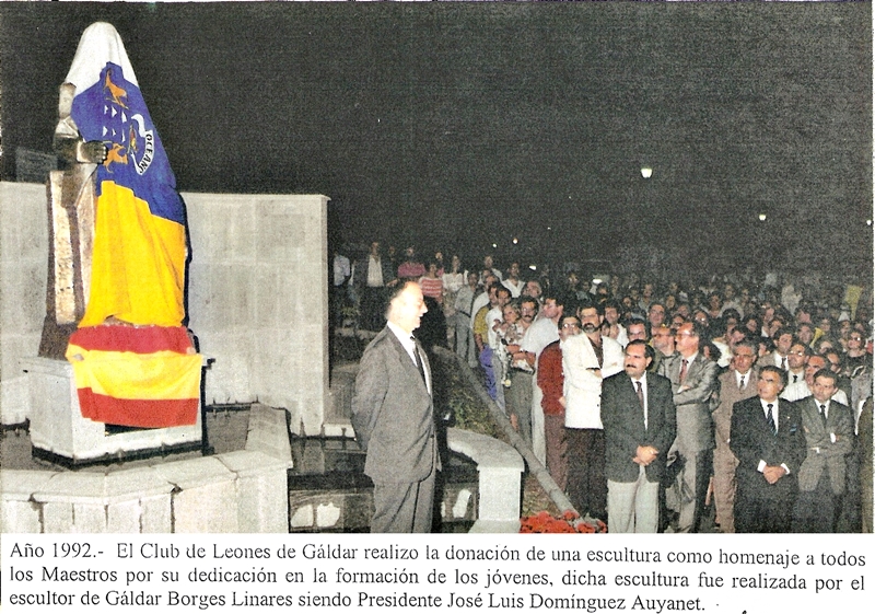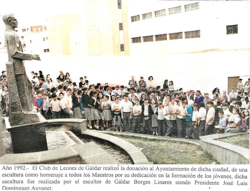 En el “Monumento al Maestro o Enseñante”, se hacía todos los años por la misma fecha un concurso de redacción en todos los centros escolares de Gáldar y el ganador o ganadora recibía un premio y leía su redacción en la misa que se celebraba en la iglesia de Gáldar, con asistencia de las autoridades locales y muchos que llenaban la iglesia. Luego se iba hasta el monumento y se colocaba un centro de flores. Posteriormente el club invitaba a las autoridades y a los compañeros leones, que pudieran, a un almuerzo.