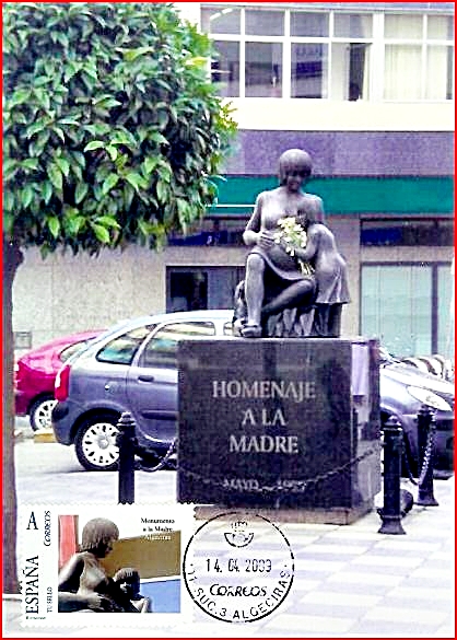 Título: Monumento 'Homenaje a la madre' en Algeciras Descripción: Inaugurado en mayo de 1995. Todos los años diversas asociaciones y el pleno del Ayuntamiento de Algeciras realizan un acto de homenaje a las madres. En la parte trasera reza "A ti que engendras amor y alumbras vida".