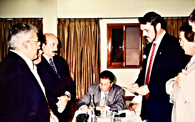 El hermanamiento con el Club de Leones San Lorenzo en Argentina Yo haciendo la visita oficial como Gobernador, en la mesa está el secretario del Club José Luis Vallejo, el Presidente Candido González y el Jefe de Región Francisco Gónzalez del Club de Leones Telde