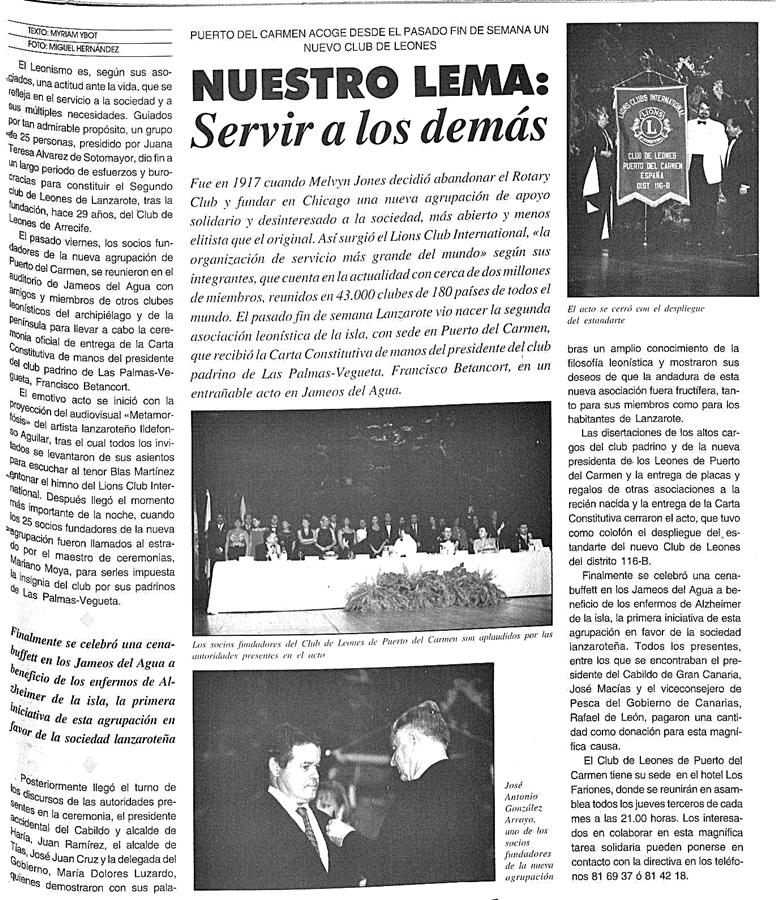 Club de Leones Tías Puerto del Carmen fundado el 06/12/1996