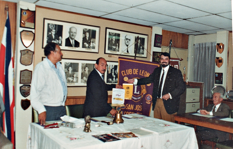 Visitando el Club de Leones San José, decano de Costa Rica Editan un Boletín semanal, con resúmenes de actividades y colaboraciones literarias de los socios. Tuve la suerte de asistir a la cena para designar a la »madre del año» fiesta que celebran anualmente para elegir entre todas las madres de Leones a aquella que se haya distinguido por su labor activa en la sociedad y en el propio Club. La madre elegida en esta ocasión fue la esposa de un Leon fundador del Club; madre de varios Leones y abuela de Leones y Leos. La elegida dirigió unas palabras a los asistentes haciendo referencia a los momentos vividos en la fundación del Club en el año 1935. Ann cuenta este Club con un socio fundador, 57 años de Leonismo, y es el más veterano de los Leones fuera de los Estados Unidos. Cuenta el Club también con varios Ex-Gobernadores y dos Ex-Directores Internacionales. Fui invitado a visitar el museo Leonístico del pasado Presidente ¡Qué maravilla! El segundo Club visitado fue el de San Jose de Costa Rica, también decano de su país. Podría repetir lo mismo que en el anterior. Este club cuenta con menos socios, pero Costa Rica tiene bastante menos habitantes que Madrid o Barcelona y tiene más de ¡50 clubes de Leones! Coincidiendo en domingo mi estancia, alquile un coche y di una vuelta por el país... en cada poblado, por pequeño que fuera, podía ver un poste con nuestro emblema, e incluso en dos poblaciones vi monumentos dedicados al Leonismo. Son importante las actividades que hacen. Durante mi estancia el Club estaba inmerso en un programa Navideño a nivel nacional, a través de la televisión estatal....