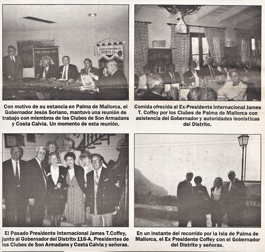 INTERNACIONAL Durante los días 18 y 19 de Octubre, visitó Palma de Mallorca el Pasado Presidente Internacional James T. Coffey junto con su esposa, en cuya visita estuvo acompañado por el Gobernador del Distrito 116-A Jesús Soriano Uriel y Señora a cuya visita corresponde el reportaje fotográfico que ofrecemos. ![]() |